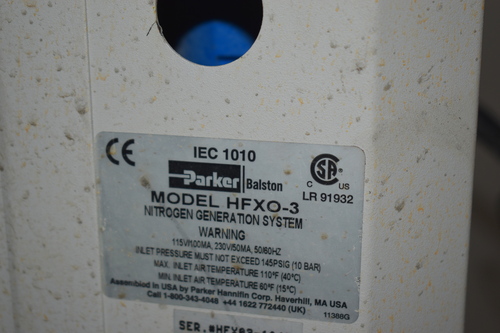 Parker Balston #HFXO-3, Nitrogen Generation System, 145 psig @ 110°F, 115/230 V.