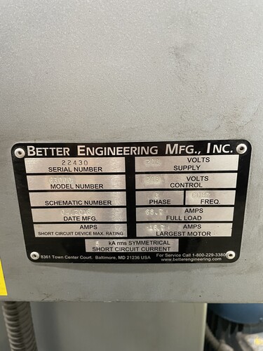 Brand/Model: Better Engineering T-5000-P : Used parts washer, 3 phase, 60hz, 115/460v, 47amps, mfg 2/99 RPM: Volts: 115/460 Phase: 3.
