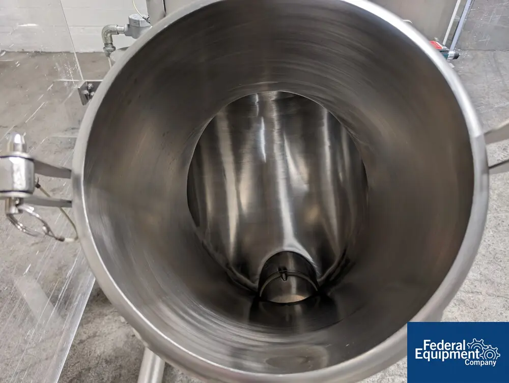 Patterson-Kelley, master blend yoke design, 2 qt. table top twin shell mixer, all 316 Stainless Steel V-shaped blender, screw down covers