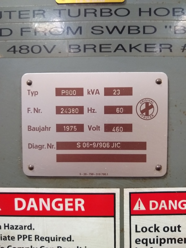 Pfauter #P-900, gear hobber, 35.4" workpiece diameter, 7.6" diameter x 8.5" L hob size, 19.7" Axial travel, 27.6" worktbl. diameter, 7.1" bore, 45-280 RPM