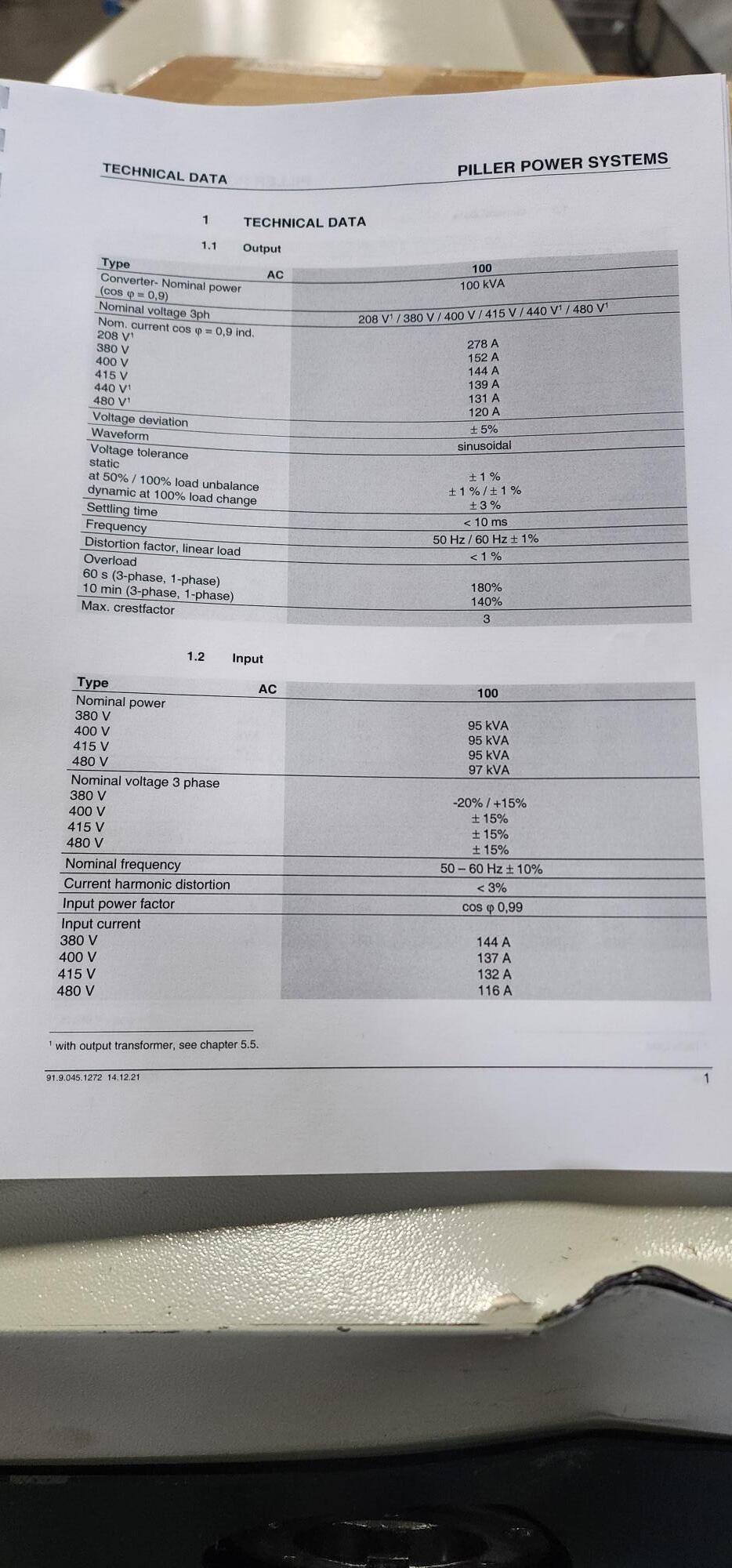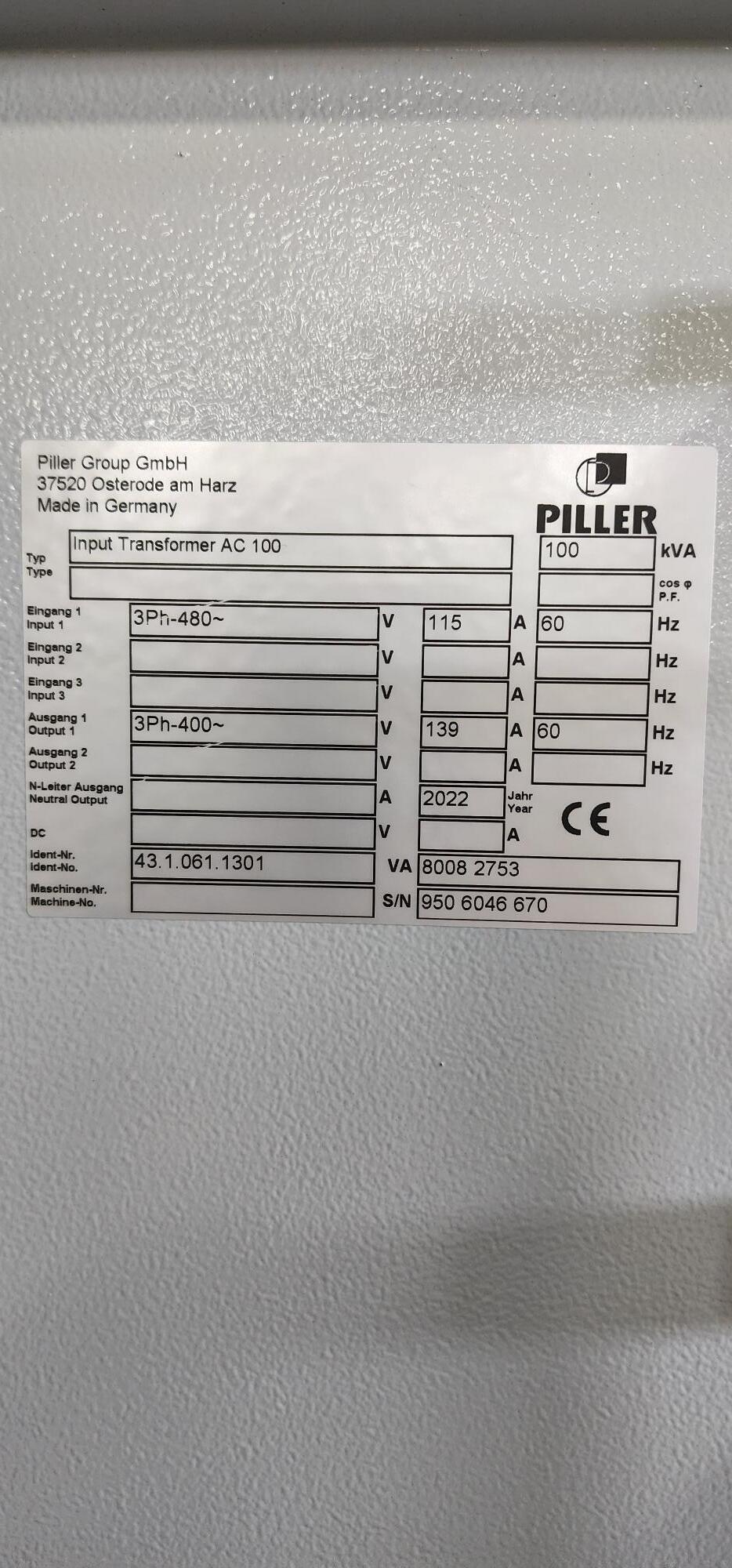 Pillar #AC100/APOCOV, dry type transformer Manufacturer: Pillar Stock # 604015 Request a Quote 10 For Sale by Machinery Resources Intl Surplus Record Dealer Since 1996 Contact Seller Simi Valley, CA Sales Dept. 818-51...> Show Seller's Phone Number 818-514-1254 Let the seller know you found their listing on Surplus Record! View More Machinery Resources Intl 's ListingsDescription Description:Piller Power Systems AC100/APOCOV 100 AC Transformer & Frequency/Voltage Converter SystemAs-New, Never UsedSpecifications:To the best of our knowledge all details listed below are deemed correct. It is the buyers responsibility to confirm all details and we encourage an inspection of the machine(s) and accessories prior to purchase. General Specifications:Please see attached photos for specificationsElectrics: 400/480 VoltAmperage: 100AFor more technical support contact:Piller Power Systems Inc, 45 Wes Warren DriveMiddletown, New York 10941-2047800 597 6937 | usa@piller.com Request More Information from SellerGet Your Price from Machinery Resources Intl! "*" indicates required fieldsName*Company*Email* PhoneZip / Postal Code*QuestionMake an OfferRequests Send me a shipping quote I am interested in financingSend Copy Email me a confirmation of this inquiryBuyer Protection Use our partner Escrow.com to buy or sell equipment safelyBuyer Protection Send me info about buyer protectionThis field is hidden when viewing the formDealer Email Buyers Who Viewed This Listing Also Viewed … Hammond BE2G, 120 V 60 Hz transformer, new in box, 1 year warrantyCategory: 60 Hz Three Phase TransformersSeller: Integrity Electric LLCLocation: Indianapolis, IN Mfr: HammondCondition:New Open boxNew Open box. S & C Vista 201 transformers, weather enclosure (9 available)Category: 60 Hz Three Phase TransformersSeller: Mid-America Engine IncLocation: Warrior, AL Mfr: S & CPRICE: $18,000 CATEGORY: Parts/Accessories SUB-CATEGORY: Transformers MODEL: S & C Vista 201 CONDITION: Used ENCLOSURE: Weather enclosure ITEM ID: 1329 6 Available, Additional Info, MAE #: S & C. Federal Pacific step down transaformerCategory: 60 Hz Three Phase TransformersSeller: Smith Machinery CoLocation: Ames, IA Mfr: Federal PacificMotor 440V & 220V, 60 HZ, 3 PH KVA 112.5 @ 150 C Rise Imp 5.07% Primary 480 Secondary 240/120 Weight 760 pounds Insulation System 220 C Ambient Temperature 40 C Max. Siemens #1P6SN1111-0AA00-0BA1, Transformer, 3 Phase, 16 kW, NewCategory: 60 Hz Three Phase TransformersSeller: iGAMLocation: Detroit, MI Mfr: SiemensSIEMENS 1P6SN1111-0AA00-0BA1 Transformer, brand new condition. Ideal for efficient power management. Perfect for various industrial applications. Enhance your setup with advanced engineering and reliability from a trusted manufacturer., Spec Sheet, SIEMENS 1P6SN1111-0AA00-0BA1, Dimensions. 14x5x7, Weight. 20LBS. Federal Pacific transformerCategory: 60 Hz Three Phase TransformersSeller: Yoder Machinery SalesLocation: Holland, OH Mfr: Federal PacificShare × "*" indicates required fieldsYour Name*Your Email* Recipient's Email* Note to Recipient