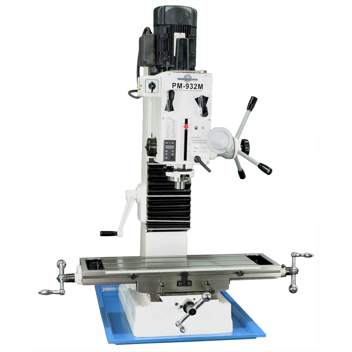 - Spindle Speeds (RPM): 90, 210, 345, 670, 1180, 1970