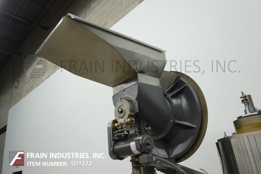 Automatic, stainless steel, 4-head rotary, chuck capper capable of speeds from 40 to 120 caps per minute – depending on cap, container and configuration. Caps size: up to 120mm with correct change parts. Containers: up to 6 1/2" diameter. Equipped with 5" conveyor, worm screw to star wheel in feed, star wheel discharge, cap hopper, cap sorting disc with chute, cap to chuck transfer disc and four chuck stations. Mounted on stainless steel frame with adjustable feet.