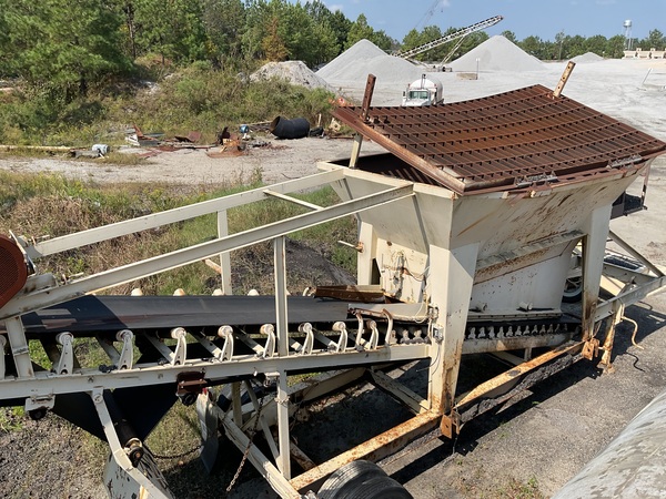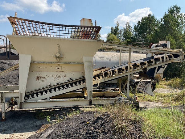 Portable Gencor 8’ x 11’ recycle bin with adjustable heavy duty grizzly S/N- 1BRCF-53497-97-1A Adjustable feed gate 40’ wide inclined belt extends ~ 22’ - belt appears in good condition Siemens 7.5 hp motor thru Rexnord gearbox Bin interior has been lined and appears in very good condition All rollers appear in very good condition Single axle with four tires - system appears to be okay