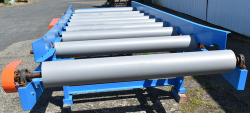 TITAN 52" X 90' Pre-owned Powered Conveyor : -- 52" W x 90' L. -- 2.5" Dia. set on 5" centers. -- (4) 3-Ph motors width gear reduction. -- Includes conveyor supports.