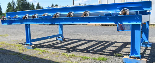 Doucet BTRS-70-30-96-12-162 Return Conveyor, Manufacturer′s (to be confirmed), The Doucet BTRS Return Conveyor is designed for straight-line and gang rip saws, with models tailored to fit different board widths and lengths. This system uses retractable receiving rollers and transfer belts to move boards ...more