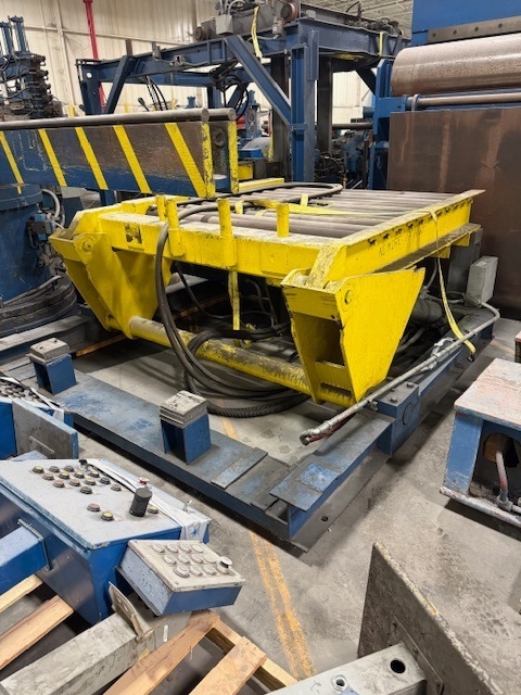 , Was used on a 60" Wide Slitting Line, -Entry Passline Roll, -Entry Pinch Rolls, 6" Dia. x 62" Face Width, Hyd. Cylinder Loaded, 2 HP Dayton R.A. Gear Motor Driven, 1720 RPM, 230/460 V, -Entry Side Guides, Manual Adjustment, -Size of Floor Mounted Base Plate: 75" L x 23" W, -Overall Size: 97" L x 40" W x 65" High ...more