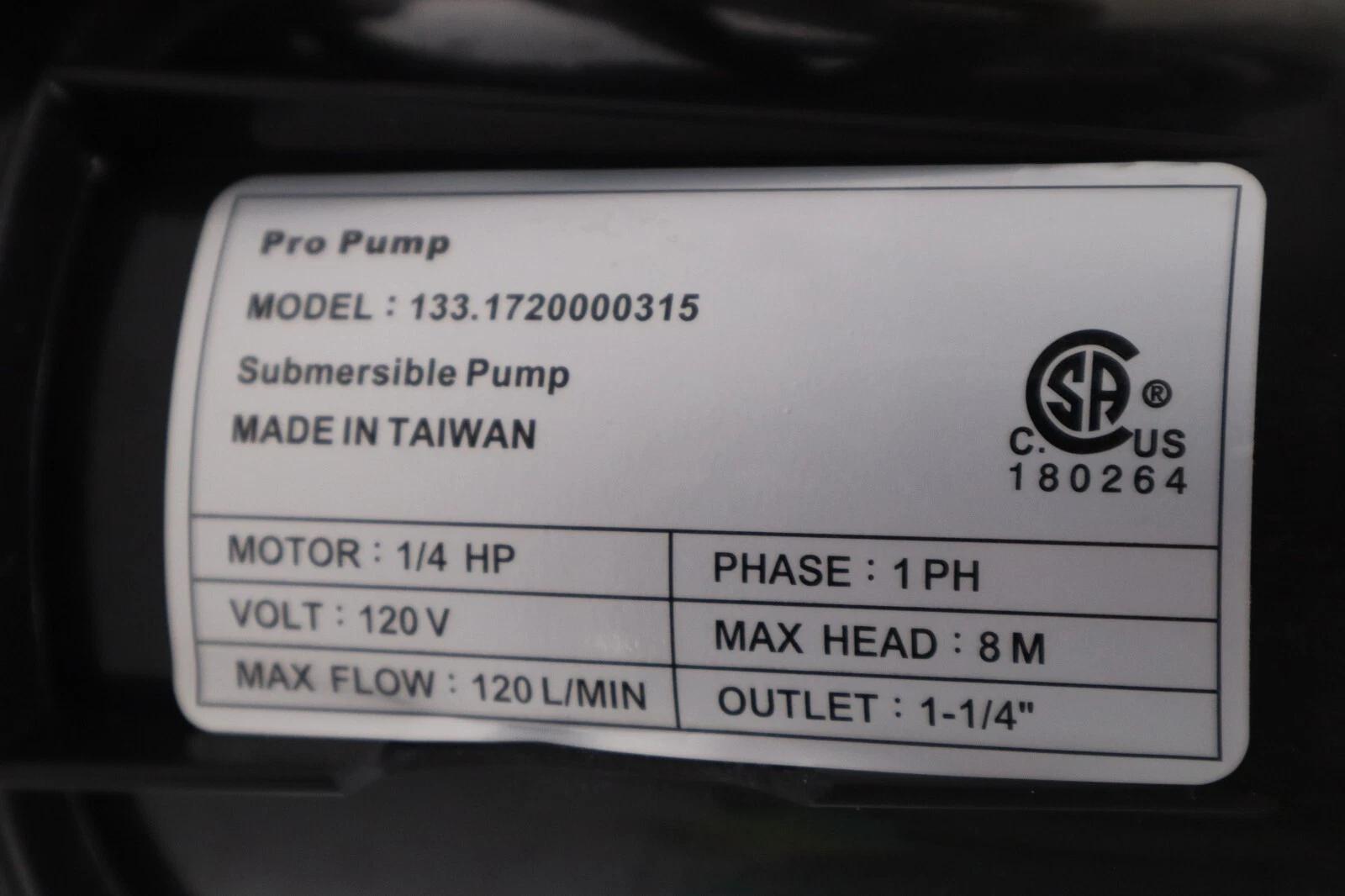 PRO PUMP Submersible Pump 1/4 HP 120 Volt 133.1720000315 STOCK H920