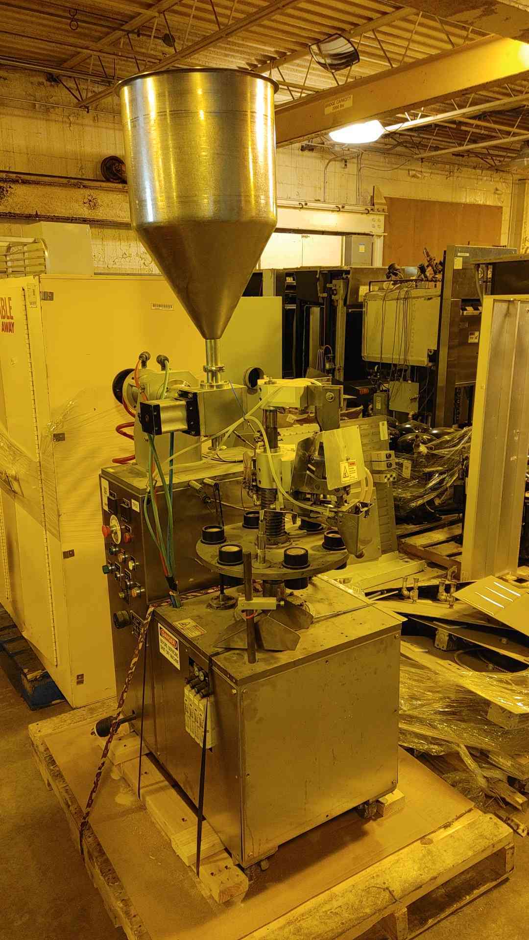 used- pneumatic scale rotary piston filler, model rf. 18-head rotary filler. stainless steel construction. last used in beverage operation. 3/60/480v.