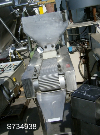 Seidenader Model DS10/L65, Stainless steel, tablet sorter, rated up to 1000 kg of tablets per hour – depending on materials and application. dual 23" long x 10" high x 10" slant bottom, stainless steel tablet feed hoppers with (10) 12" long vibratory tablet feed chutes to (10) hand crank ...more