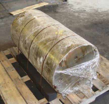 20" DIAMETER X 36" LONG. FOUR 1" THREADED HOLES IN ONE END, TWO 1" THREADED HOLES IN OPPOSITE END. NEVER USED. C (ITEM #1084)