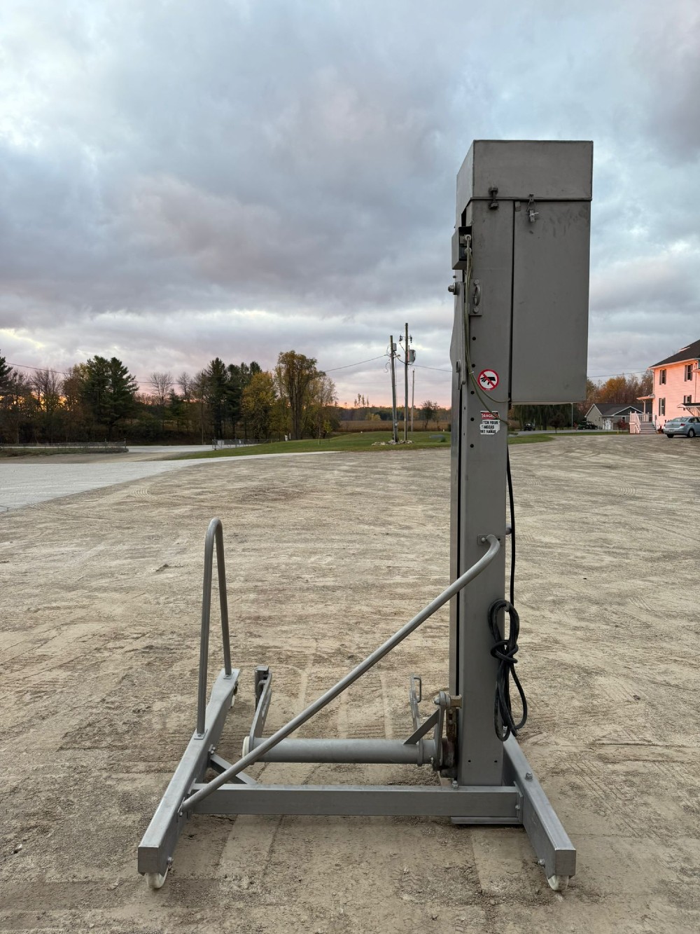 ROSE BPUDH BOX, PALLET & UNIT DUMPING HOIST: --Box, Pallet & Unit Dumping Hoist, for dumping one load at a time. --The hoist will be fabricated from steel tubing with a box cradle that pivots at the top. The three sided cradle will hold the box, pallet, or unit when it is pivoted up 135 degrees to the final ...more