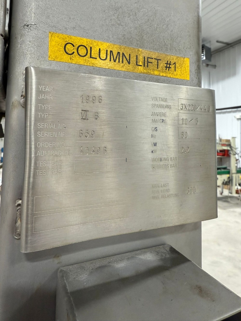 - MFG REISER, BUILT IN 1996, SERIAL #: 659 MODEL #: 40496