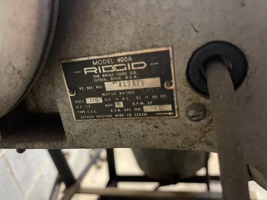 Ridgid #400A, Pipe Threader, 115 V., on cart Manufacturer: Ridgid Model: 400A Stock # 104294 Request a Quote 4 For Sale by RT Machine Surplus Record Dealer Since 2025 Contact Seller Hughesville, PA Sales 570-58...> Show Seller's Phone Number 570-584-2002 Let the seller know you found their listing on Surplus Record! View More RT Machine 's ListingsDescriptionRidgid Model 400A Pipe Threader Single Phase 115 Volt Mounted on Cart This is a part of a total plant liquidation, Please call for details Request More Information from SellerGet Your Price from RT Machine! "*" indicates required fieldsName*Company*Email* PhoneZip / Postal Code*QuestionMake an OfferRequests Send me a shipping quote I am interested in financingSend Copy Email me a confirmation of this inquiryBuyer Protection Use our partner Escrow.com to buy or sell equipment safelyBuyer Protection Send me info about buyer protectionThis field is hidden when viewing the formDealer Email Buyers Who Viewed This Listing Also Viewed … Ridgid #400A Pipe Maintenance Cart With Vice And Tooling And DiesCategory: Pipe Threaders (Includes Nipple Machin...Seller: TNT IndustrialLocation: Orange, CA Mfr: RidgidModel: -400AFind many great new & used options and get the best deals for Ridgid Model No. 400A Pipe Maintenance Cart with vice and tooling and dies etc. Free shipping for many products!. Ridgid #535, pipe threader with extra heads & toolingCategory: Pipe Threaders (Includes Nipple Machin...Seller: Kevins Equipment Co. KECLocation: Houston, TX Mfr: RidgidModel: 535RIDGID 535 PIPE THREADER W/ EXTRA HEADS AND TOOLING. Milwaukee #2874-20 M-18, fuel 18 V cordless handheld pipe threader w/charger & die setCategory: Pipe Threaders (Includes Nipple Machin...Seller: Yoder Machinery SalesLocation: Holland, OH Mfr: MilwaukeeModel: 2874-20BOUGHT FOR ARE USE NOT FOR SALE. Ridgid #802, pipe threading machine, 115 V., 1-phase, 26 amps.Category: Pipe Threaders (Includes Nipple Machin...Seller: Turners Machinery IncLocation: Santa Paula, CA Mfr: RidgidModel: 802RIDGID 802 PIPE THREADING MACHINE, MAKE: RIDGID, MDL: 802, VOLTS: 115, AMPS: 26, SINGLE PHASE, PRICE: $1,600.00, *** SHOWN ARE TO BE, USED AS A GUIDELINE ONLY. IT IS, THE CUSTOMERS RESPONSIBILITY TO, CHECK FOR SIZE AND S BEFORE, PURCHASING WE WILL NOT BE RESPONSIBLE, FOR ERROR OR OMISSIONS. Collins #22A, Thread-O-Matic, portable pipe threading machine, serial #2860a, 1966Category: Pipe Threaders (Includes Nipple Machin...Seller: Smith Machinery CoLocation: Ames, IA Mfr: CollinsModel: 22AYear: 1966THREADING CAPACITY:, PIPE ---------------------------------- 1/8 in THRU 2 in, BOLT ---------------------------------- 1/4 in THRU 2-1/4 in, CUTTER: WHEEL TYPE WITH SLIDING ROLLER, BACK, CUTTING CAPACITY:, PIPE ---------------------------------- 1/8 in THRU 2 in, BOLT ---------------------------------- 1/4 in THRU 1 ...moreShare × "*" indicates required fieldsYour Name*Your Email* Recipient's Email* Note to Recipient