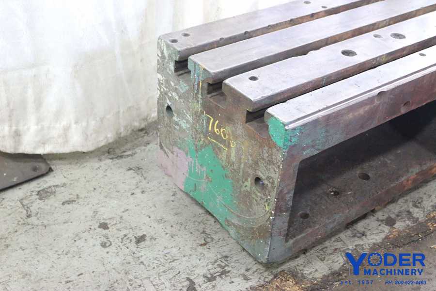 Riser Block, Cast Iron, T-slot, 77" L x 18" W x 15" H, #17606 Model: 17606 Stock # 17606 Request a Quote 5 For Sale by Yoder Machinery Sales Surplus Record Dealer Since 1960 Contact Seller Holland, OH Sales 866-69...> Show Seller's Phone Number 866-692-8933 Let the seller know you found their listing on Surplus Record! View More Yoder Machinery Sales ' ListingsDescriptionLENGTH OF BLOCK ....................... 77"WIDTH OF BLOCK ........................ 18"HEIGHT OF BLOCK ....................... 15"NUMBER OF T SLOTS ..................... 3CENTER DISTANCE BETWEEN SLOTS ......... 5"WIDTH OF T SLOT ....................... 1-1/2"DEPTH OF T SLOT ....................... 2-3/4"WIDTH OF T SLOT AT BOTTOM ............. 2-3/4"CAST IRON ............................. YES Request More Information from SellerGet Your Price from Yoder Machinery Sales! "*" indicates required fieldsName*Company*Email* PhoneZip / Postal Code*QuestionMake an OfferRequests Send me a shipping quote I am interested in financingSend Copy Email me a confirmation of this inquiryBuyer Protection Use our partner Escrow.com to buy or sell equipment safelyBuyer Protection Send me info about buyer protectionThis field is hidden when viewing the formDealer Email Buyers Who Viewed This Listing Also Viewed … Film developer, GE Structurix M ECO type 5203/300, serial #1718, 2017Category: Tooling and Accessories - Miscellaneou...Seller: FL Sales IncLocation: Solon, OHModel: 1718Year: 2017 Spade Drill, Allied Machine & Engineering #20601-1500Category: Tooling and Accessories - Miscellaneou...Seller: Machinery CentralLocation: Louisville, KYModel: 20601-1500, AMEC Spade Drill AA-100-150, model 20601-1500 by Allied Machine & Engineering. This used tooling accessory s a 1.5" shank diameter and 6.5" overall length. Condition like new, ideal for drilling tasks., Spec Sheet:, AMEC Spade Drill AA-100-150, 20601-1500, Condition: LIKE NEW, Diam: AA-100-150, Item Number: ...more Extruder Drive, Siemens, 75 HP Microprocessor DC drive, serial #16-96-D3607501-01Category: Tooling and Accessories - Miscellaneou...Seller: Soberay & Sons LtdLocation: Cleveland, OHModel: 16-96-D3607501-01One (1) Used Siemens 75 HP Microprocessor DC drive, S/N 16-96-D3607501-01. Enclosure, Graco #24C526 Warmmelt, 4-zone accessoryCategory: Tooling and Accessories - Miscellaneou...Seller: iGAMLocation: Detroit, MIModel: 24C526This listing is for a USED GRACO 24C526 Enclosure 4Zone Accessory for Warmmelt Supply Systems., Designed to house and organize heaters, controls, and wiring for up to four zones in industrial warmmelt applications. Compatible with modular Graco Warm Melt systems., See photos for., Part No: 24C526, Type: Warmmelt ...more Electro-Mechano #127, vertical mill bracket, unusedCategory: Tooling and Accessories - Miscellaneou...Seller: Dominion Air & Machinery CoLocation: Roanoke, VAModel: 127Share × "*" indicates required fieldsYour Name*Your Email* Recipient's Email* Note to Recipient