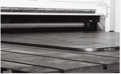 SG1950-4WJS is a reciprocating type working table: Work piece is clamped down and fixed on the working table. The whole working table moves back and forth repeatedly so the work piece can be processed by the work stations for multiple passes. The working table is driven by linear guide and ball screw drive to achieve high precision processing on the work piece. The working table feeding rate is adjustable between 6.5-29.5 ft/min.