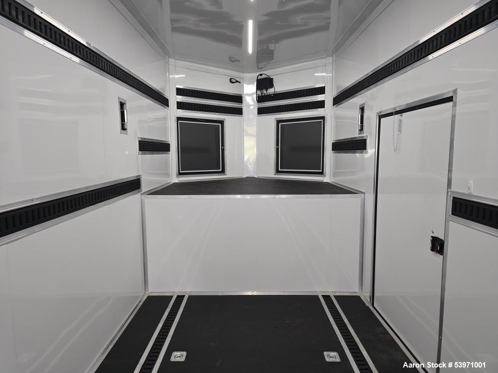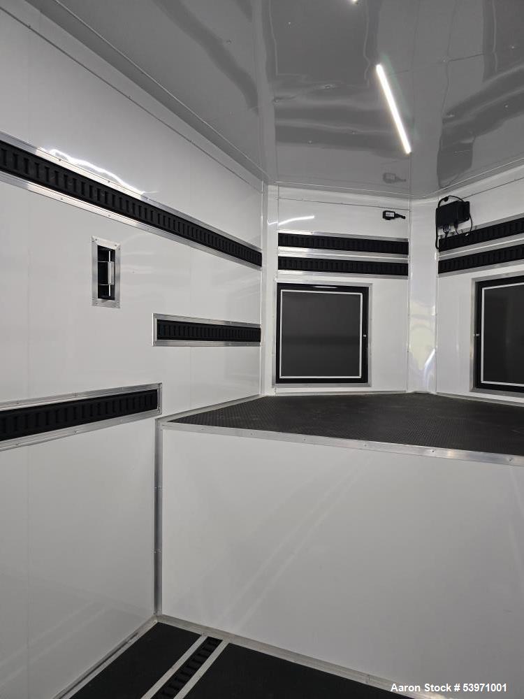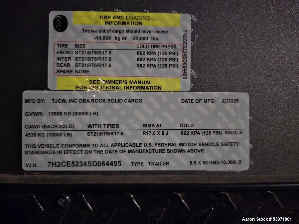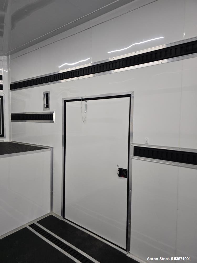 used rock solid cargo gooseneck trailer. new in 2025! 30,000 lb rating 8.5 x 52 trailer. 12" on center cross members, dual landing gear, 30,000lb rated: original build specs: features include: * 12" on center tubing roof members ,* 12" on center tubing sidewalls * dual landing gear * 2 5/16 adjustable coupler * 48" rv style side door w/ flush lock * 8" tubing mainframe * (1) aluminum ramp door handle * .030 exterior metal * screwed exterior * 120" interior height (10ft) * 3/4" premium plywood floors * 3/8" premium plywood walls * (2) 12v. led interior dome lights * access door in riser face * (4) 5,000lb d-rings * black mod wheels * 215 75 r17.5 " radial tires, aluminum fenders, one piece roof. anodized front corners, triple 10,00lb torsion axles w/ electric brake on all axles, 7 way bargman plug. door hold back. front riser enclosed by atp, 5 year warranty * z tech undercoating * 8' deck (44' box) upgrades: omit step well on rv door omit roof vent black out package *atp fenders *all black trim *black stone guard (baggage or access door) 36"x 36" w/cam lock. 10,000lb 17.5" spare black steel spare, cameras installed pair with dodge ram trucks stock wiring bought for project that was cancelled and brand new condition.