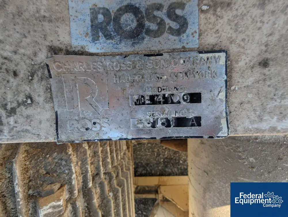 Used Ross inline high shear mixer, model ME4100, stainless steel construction, approximately 13" diameter rotor, 8" inlet, 6" outlet, with 100 HP, 460 volt, serial# 63181A.
