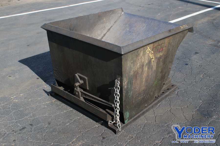 For dumping (1) load at a time. Hoist is fabricated from steel tubing with a box cradle that pivots at the top. The cradle holds the box as it is pivoted up to 135 to the final dumping position. The cradle is pivoted with a hydraulic cylinder driven by a 3 HP hydraulic pump. The cylinder is manually energized via ...more