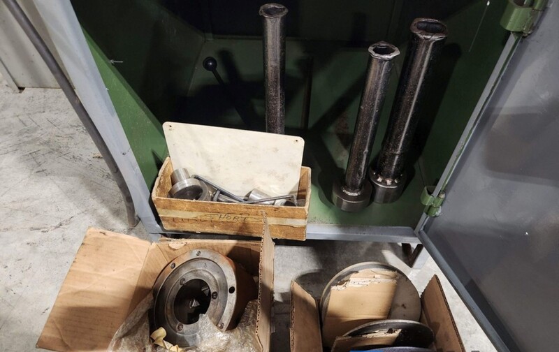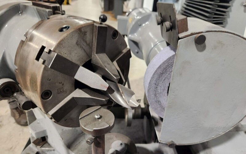 3-1/8" RUSH "380" HEAVY-DUTY SEMI-AUTOMATIC DRILL & TOOL GRINDER - pneumatic chucking - some tooling