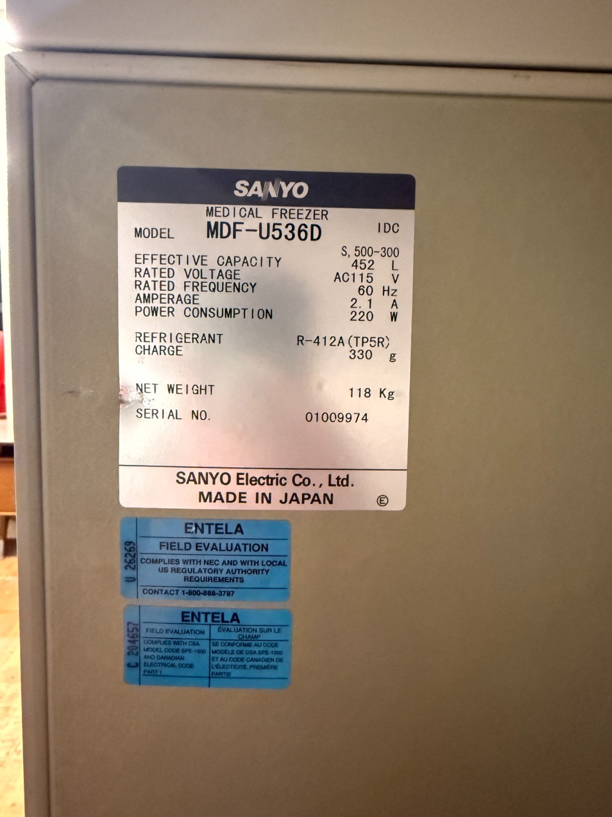 Sanyo MDF-U536-D Split Bio Medical Freezer Laboratory Equipment TESTED 452L 16CU