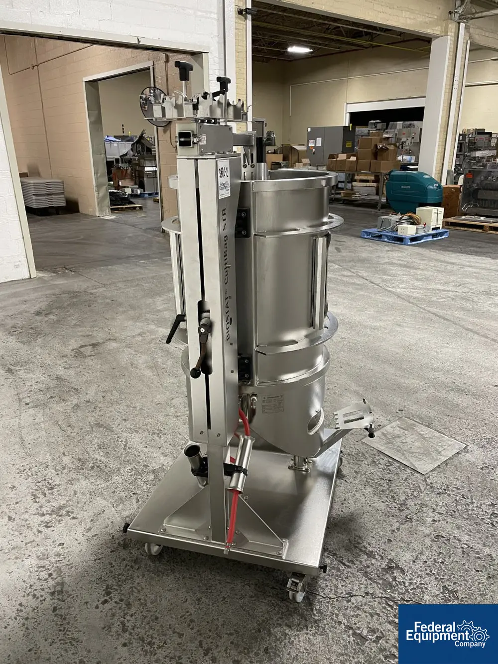 Thermo Scientific #HyClone, single use bioreactor, 250 liter capacity, Stainless Steel, open top, flat bottomshell. 24" diameter x 36" straight side, 1720 RPM, 12.5:1 Ratio