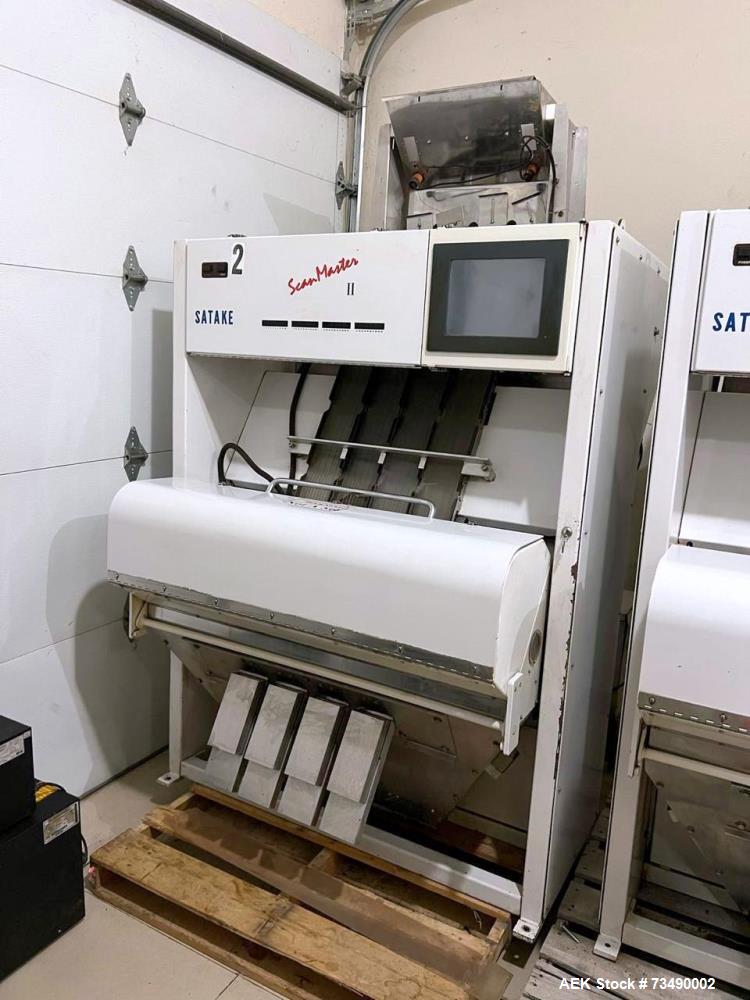 used satake scanmaster ii color optical sorter model sm11-400de | 40 ejectors | stainless | ir + visible bichromatic sensors. stainless steel contact parts. closed loop cooling system in frame. duplex sensors, bichromatic, visible and infrared cameras. serial# 2009568; 40 ejectors; oad: 4 l x 2 w x 5.5 h. 1/60/110v. previously used for pecans.