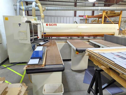 SCM #Sigma-Impact-105-PLM, front load panel saw, 19' x23' table, 2800 cfm dust collector, 7 clamps, 2005 Manufacturer: Scm Model: SIGMA-IMPACT-105-PLM Year: 2005 Stock # PK-280324 Price: $10,900 USD - Finance for as low as $221/mth Estimated monthly payment valid upon approved credit. Request Info 6 For Sale by Ex-Factory Surplus Record Dealer Since 2022 Contact Seller Charlotte, NC Sales Dept. 704-28...> Show Seller's Phone Number 704-285-2223 Let the seller know you found their listing on Surplus Record! View More Ex-Factory 's ListingsDescription 2005 SCM - SIGMA IMPACT 105 PLM: Panel SawSpecifications: -- Overall Footprint: - 19' x 23'. -- Max cutting length & cutting width: 126". -- Max blade projection: 4.13"; max. cutting height: 3.63"; machine cutting tolerances: +/- 0.006"; main saw motor: 18 HP (variable to 3,800 RPM); main blade dia.: 15" (4,300 RPM); scoring saw motor: 2 HP (eliminates chipping on bottom sheet); scoring blade dia.: 8".Equipped with: -- High Speed rack & pinion saw carriage; brushless A/C motor (saw carriage speeds: 0 - 446 FPM); pusher speeds: 0 - 330 FPM; automatic side aligner ensures tight cut tolerances: 2.8" - 48" aligning zone); variable: 0 - 3,900 RPM; 19-1/2" wide rear phenolic table for crosscutting narrow strips; (1) 2' x 8' fixed front load air table; (2) 2' x 5' movable front load air tables.Complete with: -- Premium plastic configuration: (7) Camps with thin plastic configuration; air cooling of the main blade with mist lubrication; pneumatic quick blade change: No tool required. -- Operating air pressure: 7 ATM (95 - 105 PSI); dust extraction: 2,100 - 2,800 CFM; Power: 80 Amps @ 230 Volts - 3-phase - 60 HZ (+/- 5% voltage). -- DELL PC; Windows XP; Win Cut Optimization software. Request More Information from SellerInquire Further with Ex-Factory! "*" indicates required fieldsName*Company*Email* PhoneZip / Postal Code*QuestionMake an OfferRequests Send me a shipping quote I am interested in financingSend Copy Email me a confirmation of this inquiryBuyer Protection Use our partner Escrow.com to buy or sell equipment safelyBuyer Protection Send me info about buyer protectionThis field is hidden when viewing the formDealer Email Buyers Who Viewed This Listing Also Viewed … SCM #Sigma PLM, Panel Saw, 2002Category: Panel SawsSeller: Revelation MachineryLocation: Chicago, IL Mfr: ScmModel: SIGMAYear: 2002Make: SCM, Model: Sigma PLM C, Year: 2002, Machine Location: Mississippi, Make: SCM, Type: Sigma Prima PLM Panel Saw, Year of construction: 2002, Technical Data:, Main motor power: 7 kW, Cutting length: 3,300 mm, Cutting height: 60 mm, Saw blade projection: 67 mm, Collets: 5 pieces, Main saw blade: 320 mm, Scoring saw ...more SCM #Sigma-Prima Rear Load Panel Saw, 2018Category: Panel SawsSeller: Carolina Machinery SalesLocation: Monroe, NC Mfr: ScmModel: SIGMA-PRIMAYear: 2012SCM Sigma Rear Load Panel Saw. SCM Sigma #115 Evolution, Panel Saw, 1999Category: Panel SawsSeller: D & H Machinery IncLocation: Toledo, OH Mfr: ScmModel: 115Year: 1999SCM Panel Saw 115, SN: AF/018624, Ref: 0715, Model: Sigma 115 Evolution, Electrics: 230 V, 60 Hz., Work Table Height 40" (1035mm), Cutting Size 150" x 150" (3,800 x 3,800mm), Blade Diameter 15.7" (400mm), Scoring Blade Dia. 7.87" (200mm), Blade Height 4.5" (115mm), Blade Carriage Feed 40 to 85fpm (13 to 27mpm), Blade ...more Selco #WN750, Front Load Horizontal Beam CNC Panel Saw, 149" max. cutting length, 126" pusher stroke, 5.9" saw blade projection, 5.3" gripper opening, 25 HP, 2008Category: Panel SawsSeller: Adams MachineryLocation: Libertyville, IL Mfr: SelcoModel: WN750Year: 2008Max. Cutting Length 3800mm (149"), Max. Pusher Stroke 3200mm (126"), Max. Saw Blade Projection (5.9"), Max. Gripper Opening (5.3), Height of Work Table (38.7), Main Saw Motor 22 kW (25 HP), Scoring Saw Motor 2.2 kW (3 HP), Saw Carriage Tool 1-185 MPM (7283 IPM), Pusher (by brushless meter) Max. 130 MPM (5118 IPM) ...moreJUST ADDED! Safety Speed #7400, Vertical Panel Saw, 120" overall, 8" blade, 3450 RPM, 3 HP, 64" crosscutCategory: Panel SawsSeller: RT MachineLocation: Hughesville, PA Mfr: Safety SpeedModel: 7400Safety Speed Model 7400 Vertical Panel Saw Total Frame Length - 120" (3050mm) Max Crosscut - 64" (1635mm) Cut Depth - 2-1/8" (55mm) Saw Blade Diameter - 8" (210mm) Saw Blade RPM - 3450 Saw Horsepower - 3HP (~2.2kW) Feed Roller - 22 Quick Stops Measuring Guides.Share × "*" indicates required fieldsYour Name*Your Email* Recipient's Email* Note to Recipient