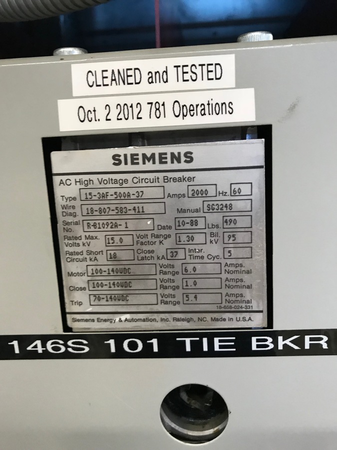 3000 Amps GE Am-13.8-1000-3h Ml-13 (am 13.8-1000) 125 Volts DC Control