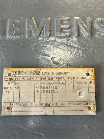 Siemens 70/50KW 1775/885RPM 3PH 460V 280M TEFC [REWOUND 2019 & HAS NOT BEEN IN SERVICE]