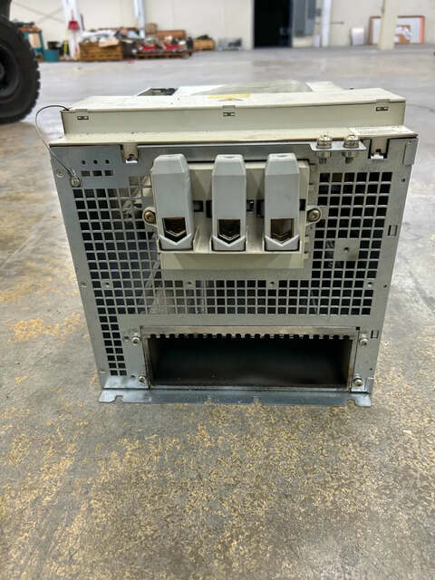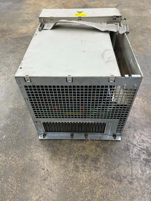 The Siemens 6SN1123-1AA00-0JA0 is a single-axis SIMODRIVE 611 power module rated at 300 A with internal heat dissipation, part of the Siemens SIMODRIVE 611 drive system used extensively in CNC machining centers and industrial automation equipment. The nameplate identifies it as an LT-Modul INT.300A, serial number T-K52012938, Version G, made in Germany. According to Siemens published specifications, the module accepts an input voltage of 380V to 480V AC and provides a DC link output, with a motor rated feed current of 100 A and a main spindle current of 120 A. Internal cooling requires the addition of an external fan unit or liquid cooling hose connection. The module connects to the SIMODRIVE 611 system via a flat ribbon cable and three-phase power bus connections visible at the front. The 6SN1123-1AA00-0JA0 was discontinued by Siemens and superseded by the 6SN1123-1AA00-0JA1; the two versions share identical mechanical and electrical specifications. This module weighs approximately 22 kg per Siemens documentation. It is suitable as a replacement or spare component in legacy SIMODRIVE 611 installations across a wide range of CNC machine tool platforms.