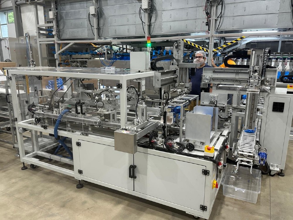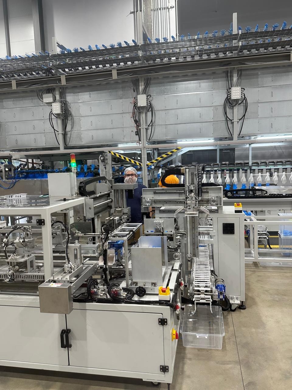 The glove packing machine includes the following pieces of equipment: Glove stacking machine, glove inner insert machine, auto carton box machine. Capacity of 160 gloves per minute, glove length 240mm to 300mm, glove leyering 100 to 200 pieces, maximum 25 pieces per leyer, machine weight 1000kg, power supply 3 phase 480 VAC 60Hz and 20 amp.