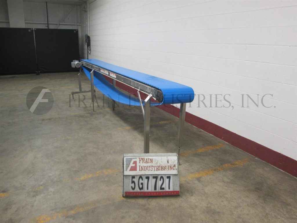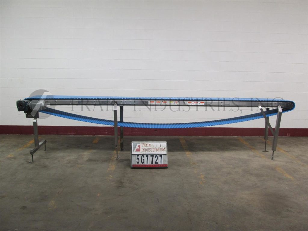 7.5" wide x 15' long, Tabletop Chain Belt Conveyor, 90 deg. Turn, 28" H feed & discharge, 43 RPM output, 3/4 HP, 1710 RPM, 230/460 V