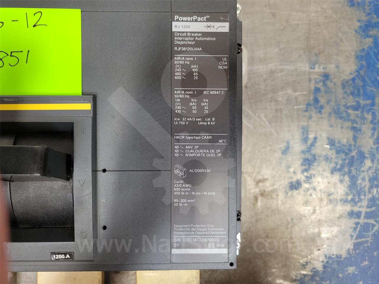 Square D Rjf Powerpact R-frame Mccb Unused Surplus 125 Volts DC Shunt Trip, Micrologic 6.0 Amps Lsig, 1200 Amps Ampacity