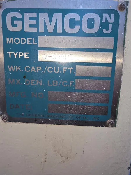V-Style Blender. (2) Westinghouse motors: (1st motor) 3/4 hp, 3450 rpm, 115/230 V, 10.0/5.0 A, 60 hz, 1 phase. (2nd motor) 1/6 hp, 1725 rpm, 115 V, 3 A, 60 hz, 1 phase. (2) 5-1/2 in. inside blades. Inside dimensions: 9-1/2 in. dia. x 17 in. straight wall (323 inside sq. in. area). Inlets/outlets: (2) 9-1/2 in. ports ...more