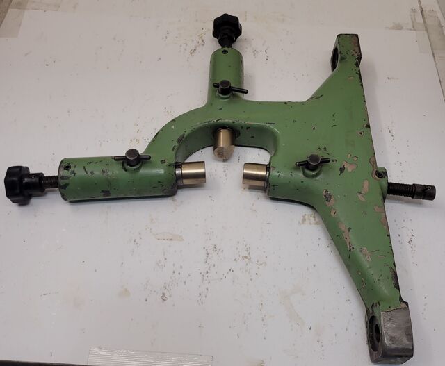 Product Large Lathe Steady Rests for 60″ or Larger Swing, Bottom to Centerline of Rest 29 1/2″, Center Hole 27 3/4″, Max Shaft Diameter with Current Jaws 16″, Bearings 5″ Diameter 2 3/4″ Width, Base of the Complete Rest 17 3/4″ x 47″ x 2 3/4″ thick, They were used ...more