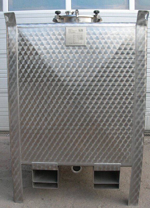 1,000 liter transport tank, storage tank, stainless steel tank 1m x 1m, cubic - unpressurized made of V2A