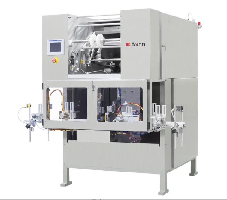 Styrotech, Model ST2650, automatic, servo driven, stretch sleever, rated from 10 to 60 containers per minute – depending on materials and application. Capable of handling a wide range of container types, shapes and sizes including large jugs and bottles from 8oz to 2½ gallons and has a container size range of 2¼" to 9½" OD x up to 6½" wide x 13½" high and layflat film size from 3" to 15" and label sizes up to 9¼" in width all with proper change parts. Film type and specs: Polyethlene, 2.0 to 3.0 ml with 10% stretch and no container / no label sensor. Control panel has A/B controller with A/B panelview and A/B servos, push button controls for master start / stop, cycle start / stop and has control dial for run / jog settings. Mounted on heavy duty frame with interlocking safety guarding and 4½" wide x 120" long delrin conveyor.