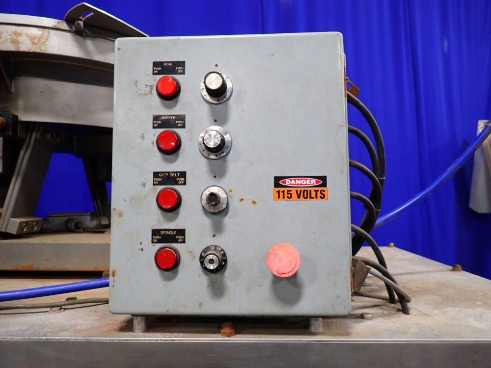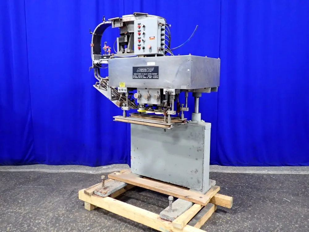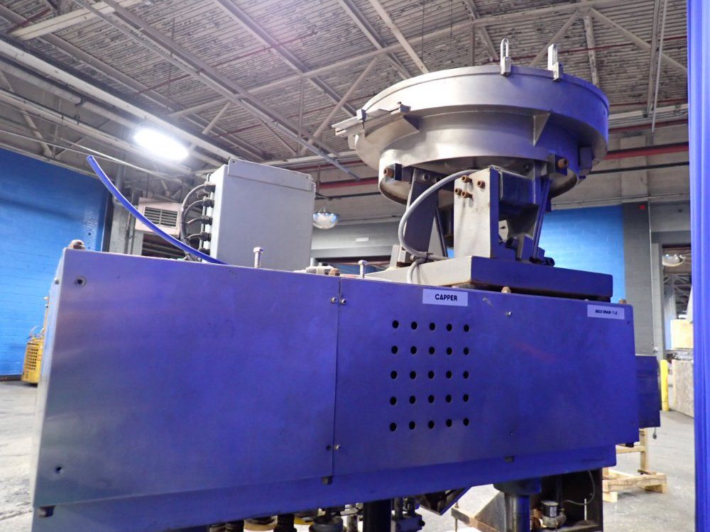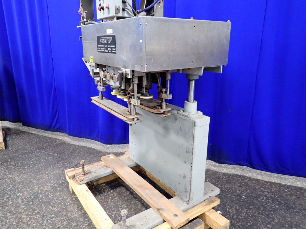 Semi-Automatic Roll On Pilfer Proof (ROPP) Capping System, Model HC-A, manufactured by THC (Taiwan Hon Chuang Enterprise). Handles cap sizes 20-40 mm with bottle heights ranging from 50-180 mm. s adjustable height with capping head rise and fall speed, suitable for ROPP caps. Driven by 1/4 HP, 220/110 Volts, 1720 RPM ...more