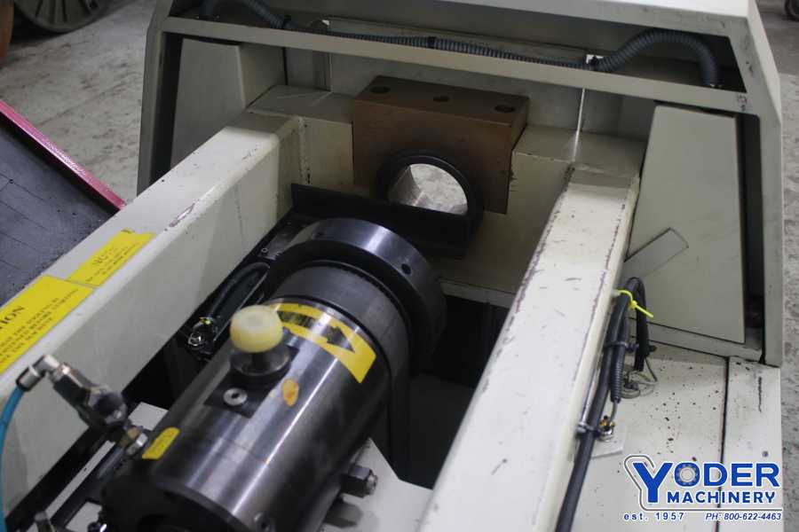 TUBE AND BAR END FINISHING MACHINE, 12" X 15" HEAD, CAPACITY TUBE 9-52mm, CAPACITY BAR 9-25mm, 1 HP 230/440 VOLTS 3 PHASE 1.5 AMPS, 1720 RPM MOTOR, FOOT PEDAL CONTROLS, MISC. TOOLING, AIR 80 PSO.