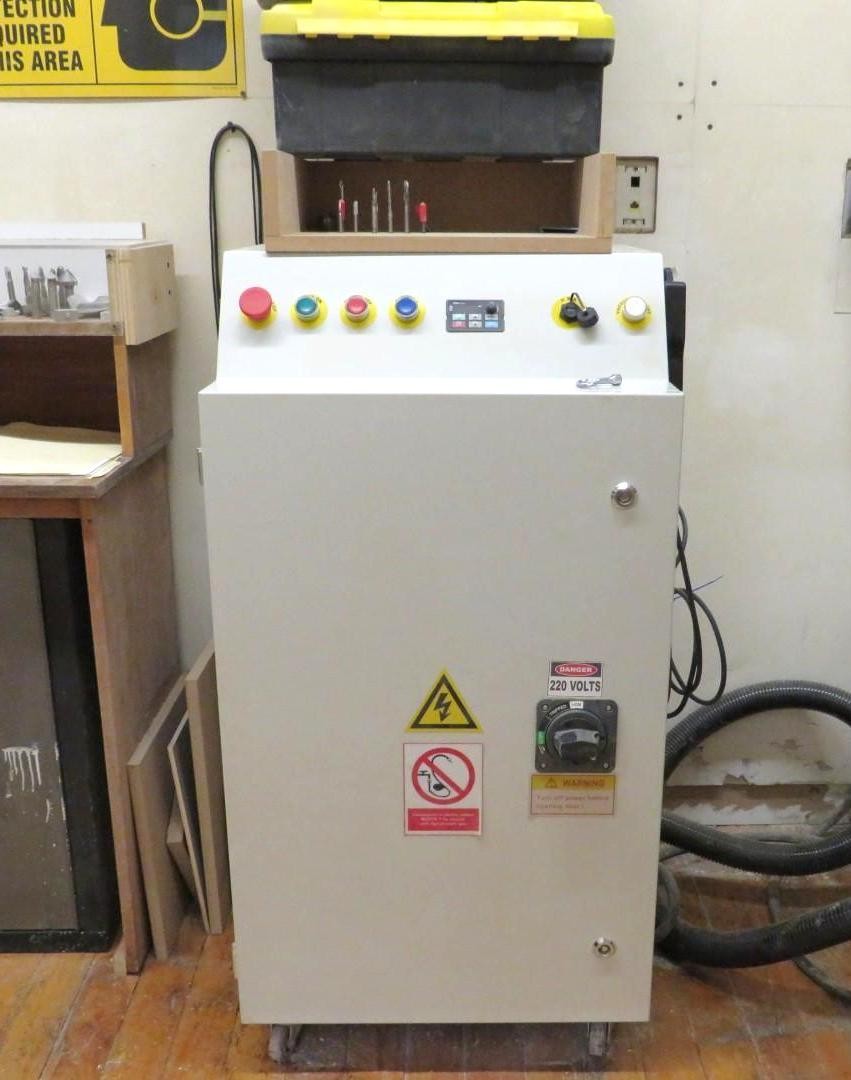 48" x 48", s/n 18020700322-4378-072518, 208/230V 3ph, 11 1/2" Z Axis, 7 1/2" gantry height, misc. cutting tools located on top of control panel are includedThis item is part of a large auction by the Thomas Hirchak Company: (1729) Questech Manufacturing Equipment & IP