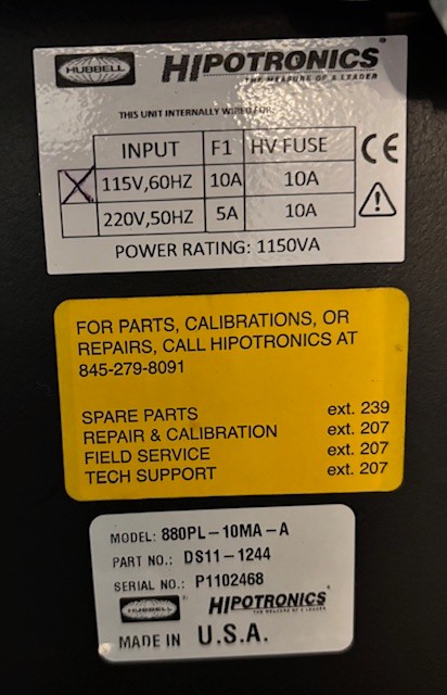 Hipotronics Model 880PL-10MA-A Series 800PL 80kvdc Hi-POT Tester
