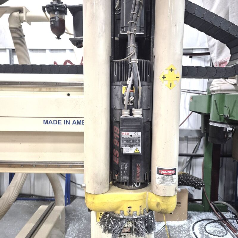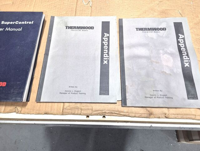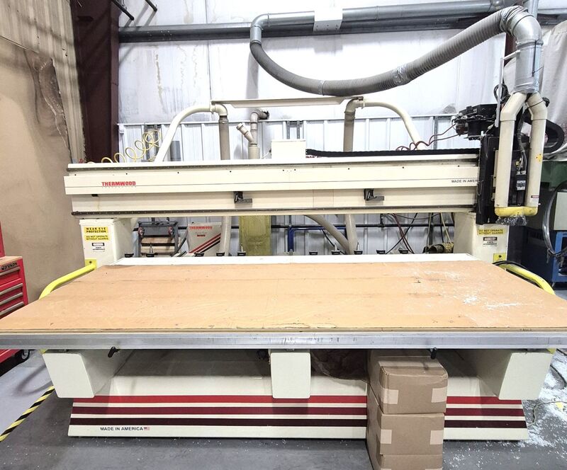 Thermwood C42 CNC Router, (2) 5'x5' Tables, It has 2 large routers, 4 smaller routers, and 2 aggregate heads in the turret, Travainni Vacuum Pump, Note from Seller: Includes two shaper heads that are not mounted into the turret and one pneumatic drill head that is not mounted into the turret. I also have one ...more