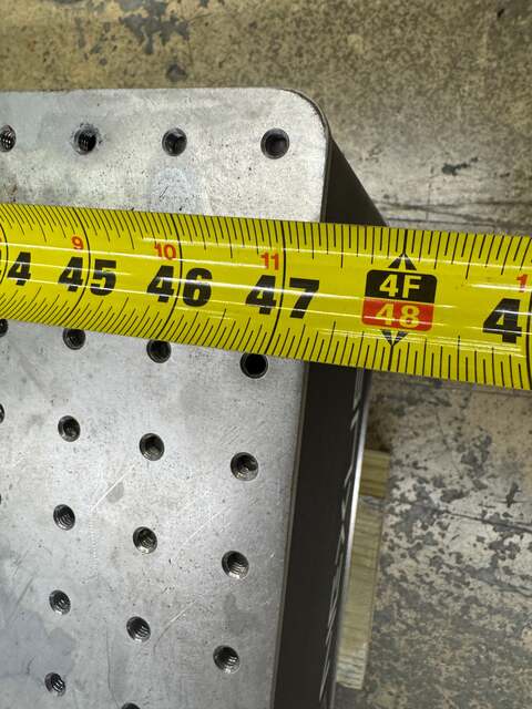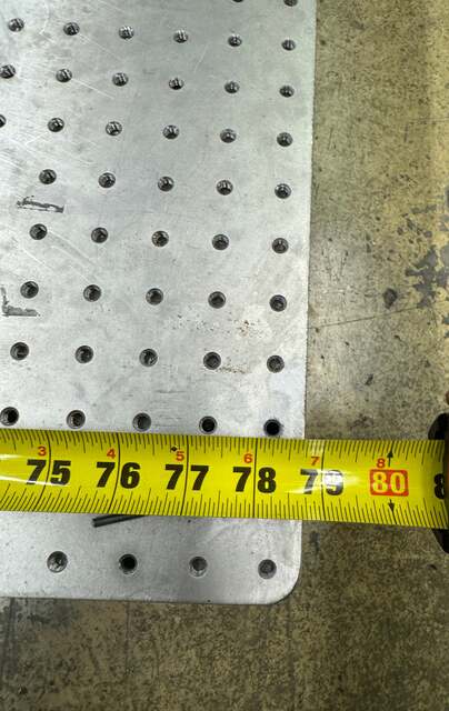 Dimensions confirmed by photo measurement: approximately 80 in long, 48 in wide, and 8.3 in thick. The isotropic all-steel construction provides excellent thermal stability, as the steel components expand and contract uniformly in all axes to maintain surface flatness across temperature changes. The core design prevents honeycomb intersections at screw hole locations, allowing fasteners to be inserted to the full depth of the table. This tabletop is offered without support legs or isolation stands. Compatible with Thorlabs F1225-series rigid support frames and active isolation leg systems. Suitable for photonics, laser optics, imaging, and microscopy setups requiring a flat, rigid, low-vibration working surface.