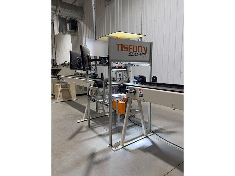 TISFOON - USA Optimizing Wood Scanner Defect Chop Saw & Sorting LineDescription -- Perfect condition 6-part automated Scanning / defect / optimizing Chop Saw with: Cut List & Sorting Line. Line made in USA; Excellent tech & machine support based out of North Carolina. -- TISFOON is an independent machine & software company based in North Carolina that has developed far more effective scanning systems using new technologies versus the legacy conglomerate scanning systems. -- This Optimizing Chop Saw Line has greater optimizing efficiency than the conglomerate scanning companies yet also costs a fraction of the upkeep and maintenance overhead. -- Purchased "new" in 2020 with latest tech software upgrades installed.Specifications -- (1) TISFOON Trio: Optimizing Cutoff Saw with: (1) 7.5 kW YASKAWA Servo motor for cutting; (1) 4.4 kW YASKAWA Servo motor for closing the gap & (1) 4.4 kW YASKAWA Servo motor to cut on a cam; 5.5 kW WESTINGHOUSE motor for the arbor with VFD. -- (2) TISFOON Scanner for: Detecting defects; includes (4) BASLER Cameras: 2-Line scan cameras for top face & bottom face; (2) area cameras with: (2) Lasers to detect 3D defects for top & bottom faces. -- (3) TISFOON Scanner 4D Option: (2) Additional area cameras for detecting defects on the sides. Linear slide on (1) side to keep focus on varying widths. -- (4) Sorting Conveyor. 16-Foot sorting Conveyor with: Photo eye and (4) blow off stations. Powered by: 1 HP SEW motor and Variable Frequency Drive; Smart speed control for gaps between pieces. -- (5) Middle Conveyor. 16-Foot Conveyor with: Smart gap control running between the TISFOON Scanner and the TISFOON Trio; powered by: 1/2 HP BALDOR motor and Variable Frequency Drive. -- (6) 11-Foot Conveyor feeding the Scanner: Powered by a 1/2 HP BALDOR motor and a Variable Frequency Drive. Synchronous speed with the Middle Conveyor.