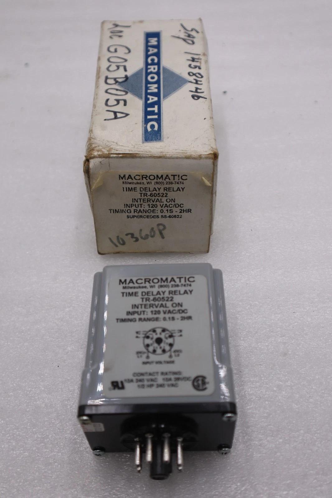 TR-60522 - MACROMATIC - TIME DELAY RELAY 120VAC/DC NEW UNIT STOCK H1306A