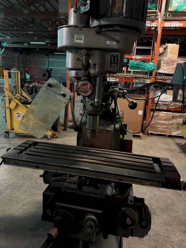 Tree #2UVRC, vertical turret milling machine, 10" x42" table, 1.5 HP, digital read out, Misc. Collets, Kurt Vise, Power Feeds to Table, Saddle, Knee, Vari-Speed Head