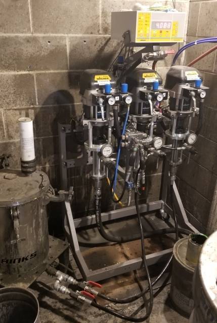 Wagner "Twin Control" automatic paint mixing machine for Plural Component paints. We sold & installed this unit new in 2019, and still have the original build sheets and information. We are an authorized distributor for Wagner and can help with anything related to this machine! Unit was operating when removed and was properly flushed with solvent. Unit has been rebuilt with new components (ask us for a list of rebuilt components). Air Operated Elevators are also available! PRICING -