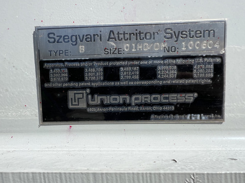 Used Union Process Batch Attritor Mill Model 15S, Union Process Batch Attritor Model 15S, Variety Steel Fabricators Pressure Vessel, Serial No: 5776, Pressure on Jacket: 100 PSI @ 350 F, 5HP Reliance Motor to turn agitator: 575 Volt, 1695 RPM, Frame: 284T, Includes 2HP Diaphragm Pump, Demonstration video available. ...more
