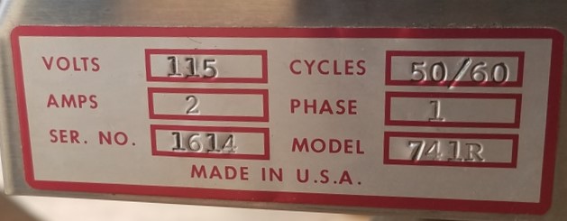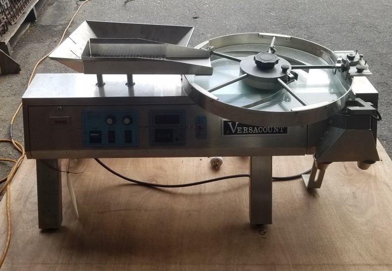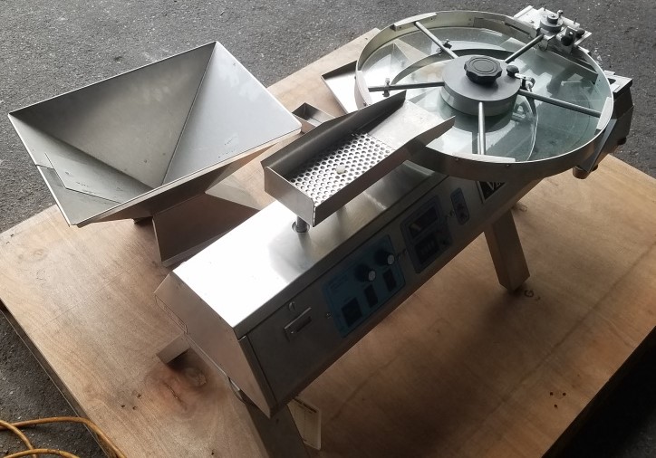 Versa Count Tablet Counter, Model 741R - Includes a 16" diameter counting table with a feed hopper. Powered by a 115V, 2 AMP motor (50/60 Hz, single-phase). Serial number 1614.